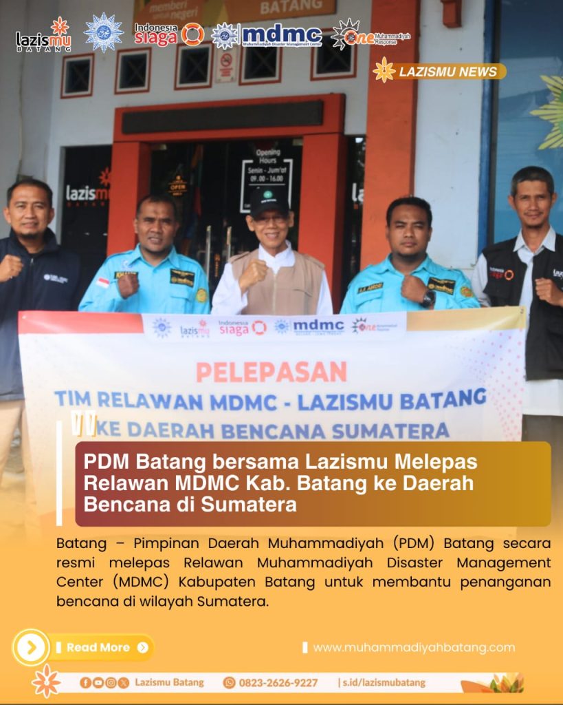Batang – Pimpinan Daerah Muhammadiyah (PDM) Batang secara resmi melepas Relawan Muhammadiyah Disaster Management Center (MDMC) Kabupaten Batang untuk membantu penanganan bencana di wilayah Sumatera.